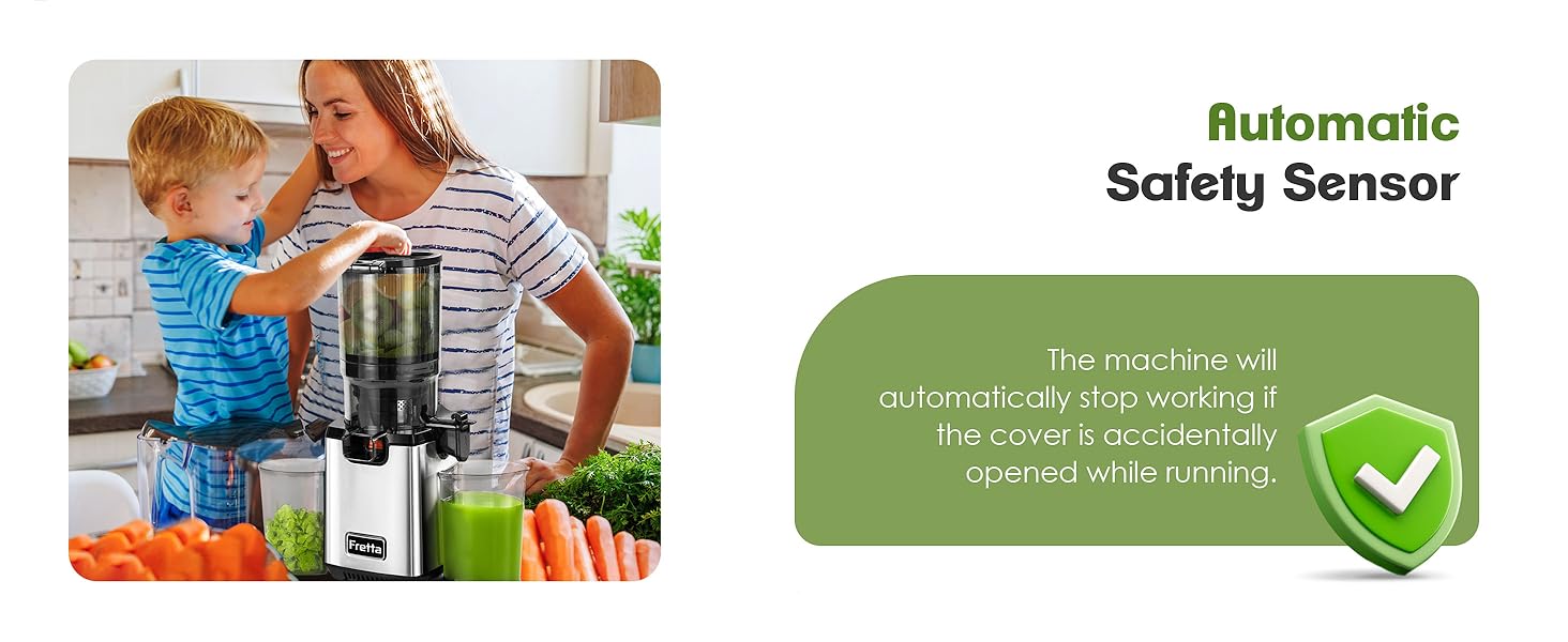 Fretta Boost F6000 Cold Press Juicer (250W, 5.3'' Wide Feed Chute, 1.8L Capacity)
